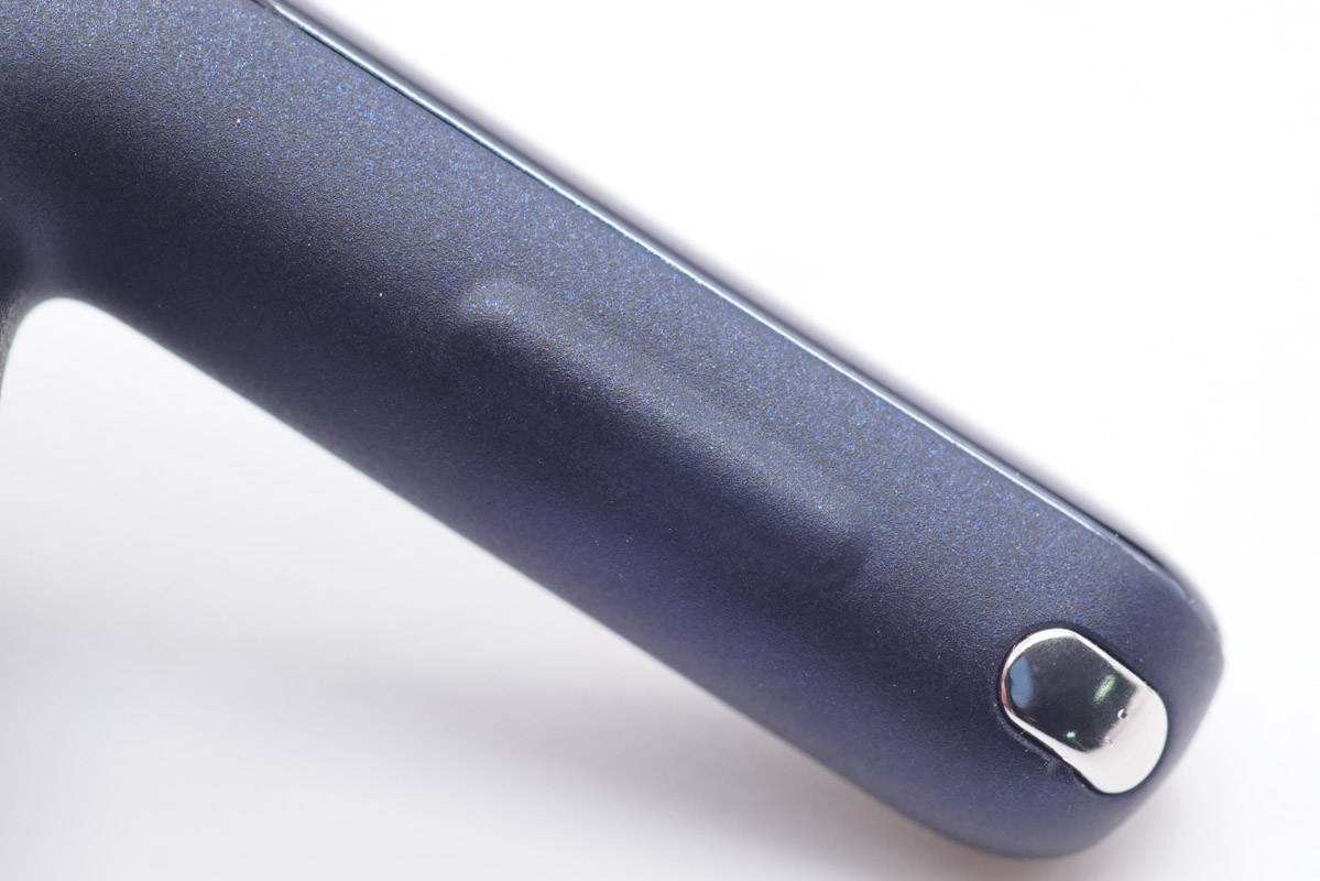 側(cè)邊壓感按鍵特寫,設(shè)計(jì)有條形凸起,便于用戶獲悉操控位置。